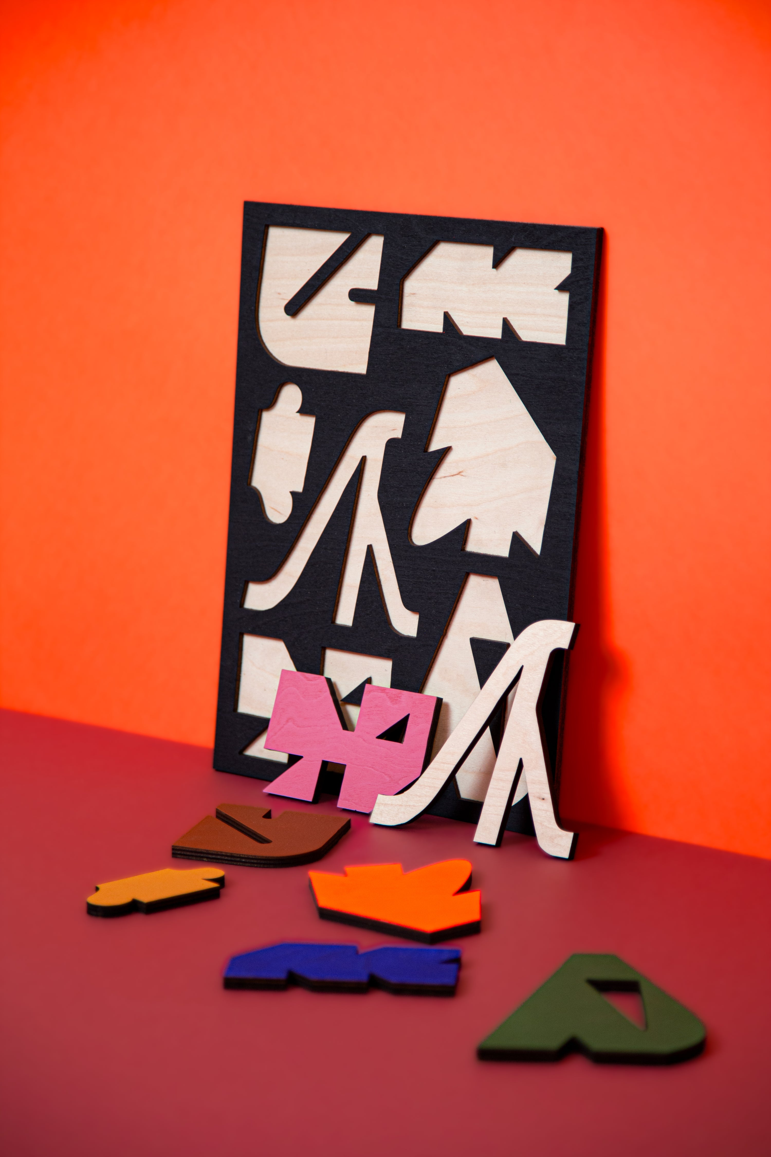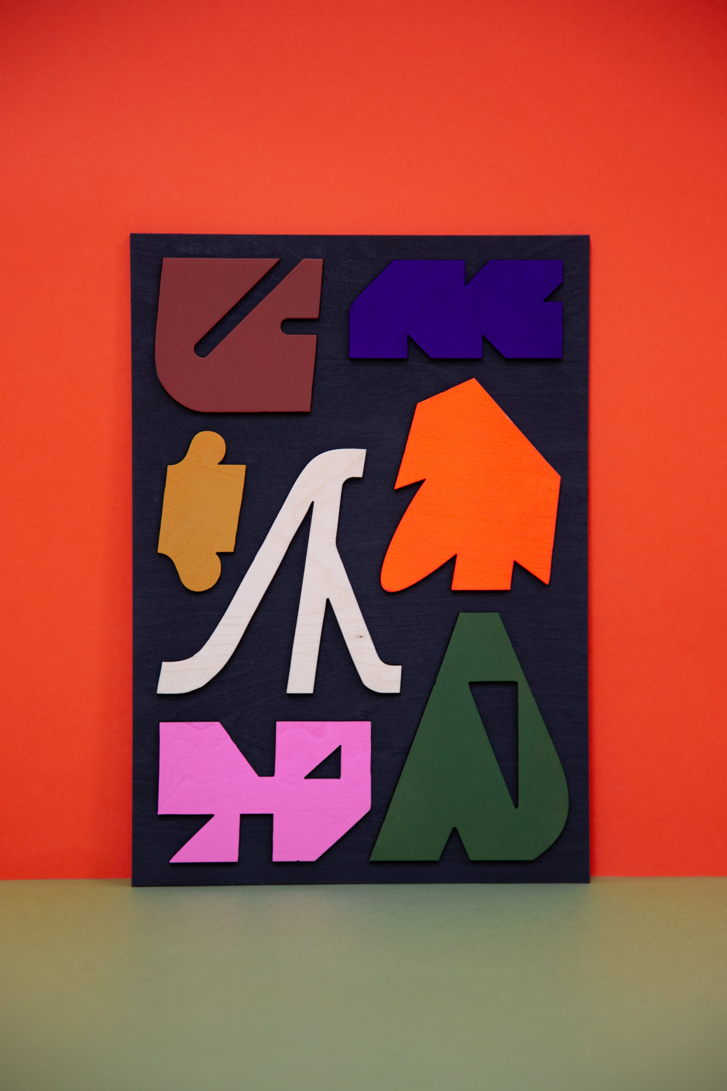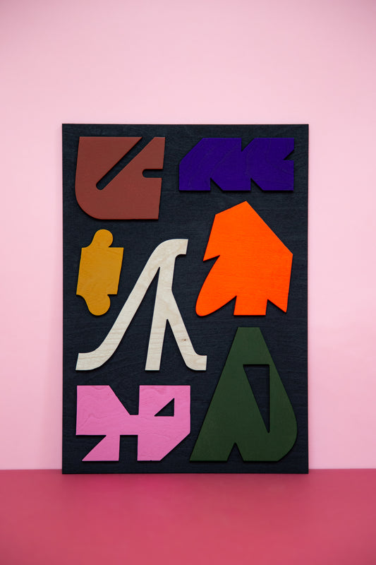 "I always wanted to make a shape sorting board, a "vormenplank". I am intrigued by this educational childrens game, by collecting them as vintage gems but also in relation to my own practice of playing with basic forms and symbols, hand eye coordination and childhood memories. "